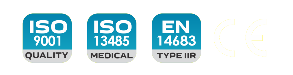 3-Layer Face Mask made for single-use. It features an adjustable wire nose piece and elastic ear loops to help ensure a more secure fit against your face. BFE > 99%